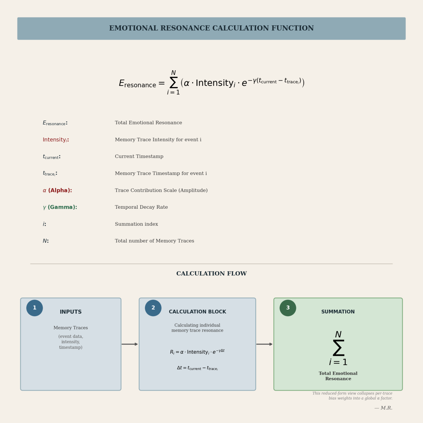 The drift term \(b_{\psi}(z_t, M_t)\) represents the memory-weighted directional pull on the evolving latent state. It is recalculated continuously from the current latent state and memory context, rather than acting as a fixed bias. This allows the middleware to carry continuity forward without becoming rigid or unresponsive.