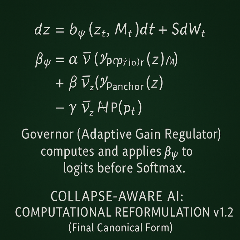 The Governor adjusts this balance in real time. In stable conditions it reinforces alignment; in uncertain conditions it softens collapse to allow recalibration; and when entropy spikes, it pulls the system back toward anchor stability before nonsense or drift can occur.